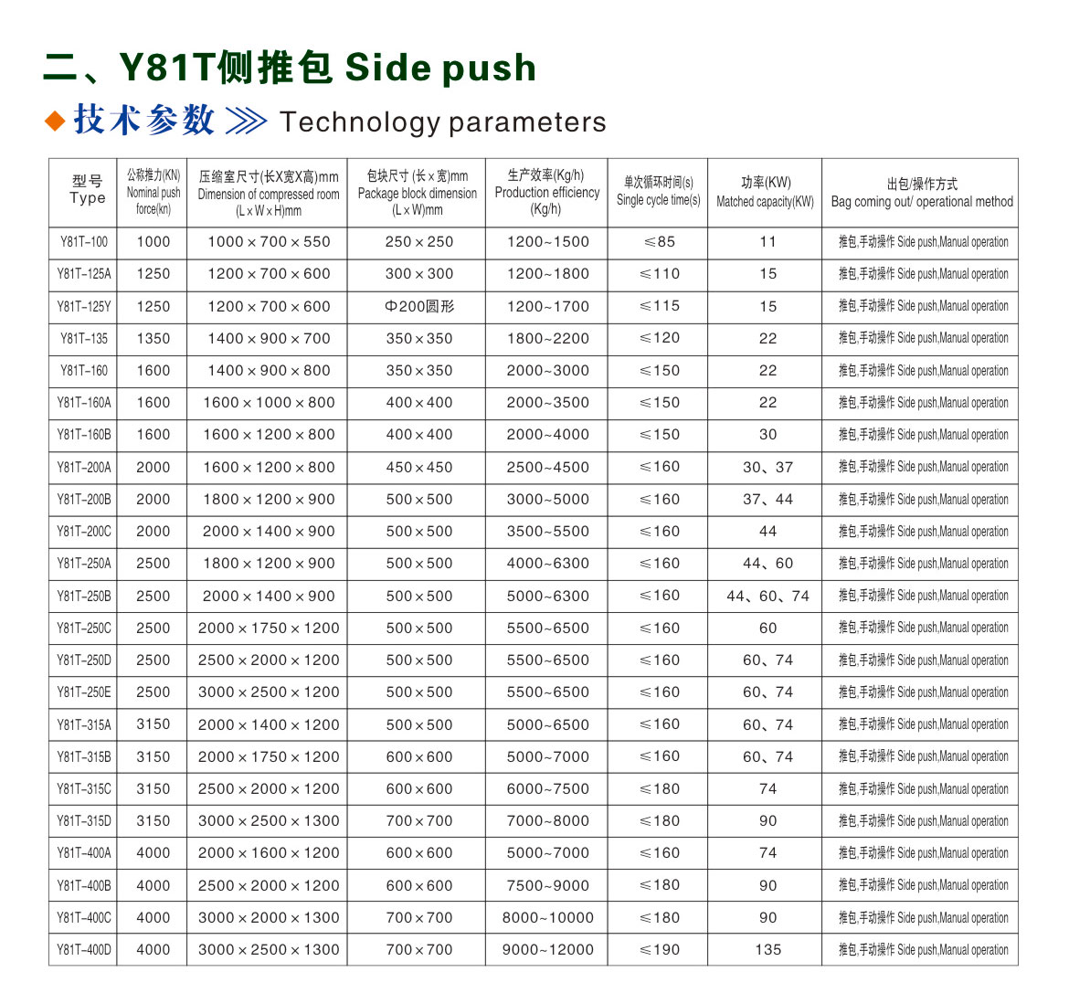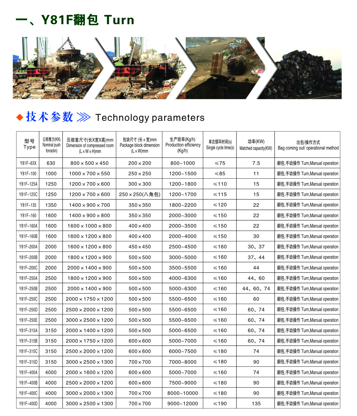 Y81系列金屬液壓打包機(jī)適用于煉鋼、回收加工行業(yè)和有色金屬冶煉行業(yè)。各種金屬?gòu)U料、鋼屑、廢鋼、廢鋁、廢銅等可擠壓成矩形、圓柱形、八角形等形狀的合格裝料,降低運(yùn)輸和冶煉成本。