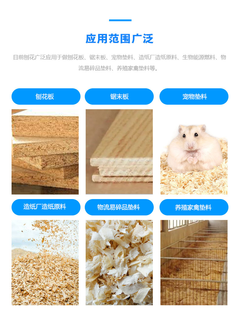 能夠?qū)⒏鞣N木材加工成優(yōu)質(zhì)的刨花,刨花尺寸、厚薄可以任意調(diào)整,提高刨花產(chǎn)量。