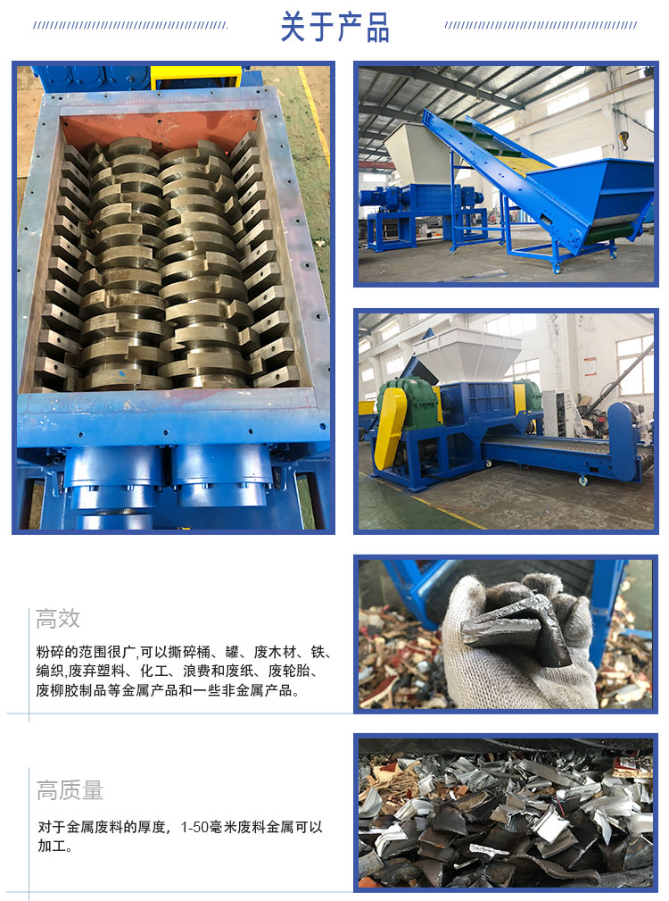我們公司生產(chǎn)的KSB類型粉碎機(jī),粉碎的范圍很廣,可以撕碎桶、罐、廢木材、鐵、編織,廢棄塑料、化工、浪費(fèi)和廢紙、廢輪胎、廢柳膠制品等金屬產(chǎn)品和一些非金屬產(chǎn)品??蛇x輸送機(jī)加載設(shè)備,磁選機(jī)輸送機(jī)的材料,有四種模式,不同的處理功能,能滿足不同級(jí)別的小,中型和大型廢物回收制造商。